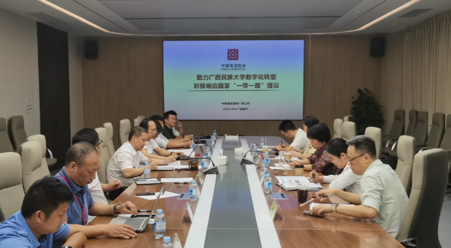 9月26日下午,在公司科技处带领下,电子信息公司和人工智能公司前往中国通信服务股份有限公司广西公司(以下简称中国通信服务广西公司)进行合作洽谈。科技处副处长梁桂娥、人工智能公司经理葛丽娜、电子信息公司经理罗丽平及教师代表参加座谈。中国通信服务广西公司党委委员、副总经理徐陆勇等公司领导热情接待了来访人员。