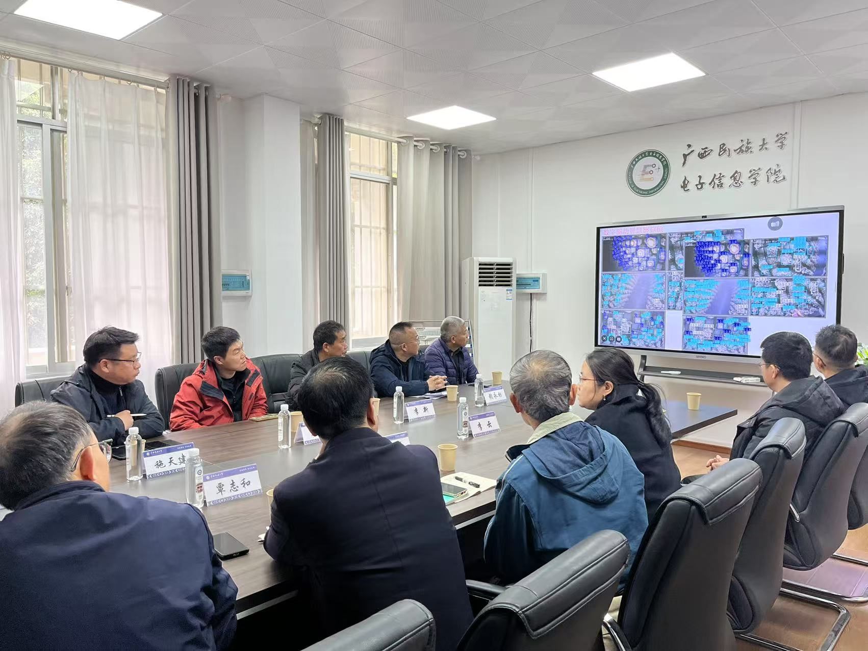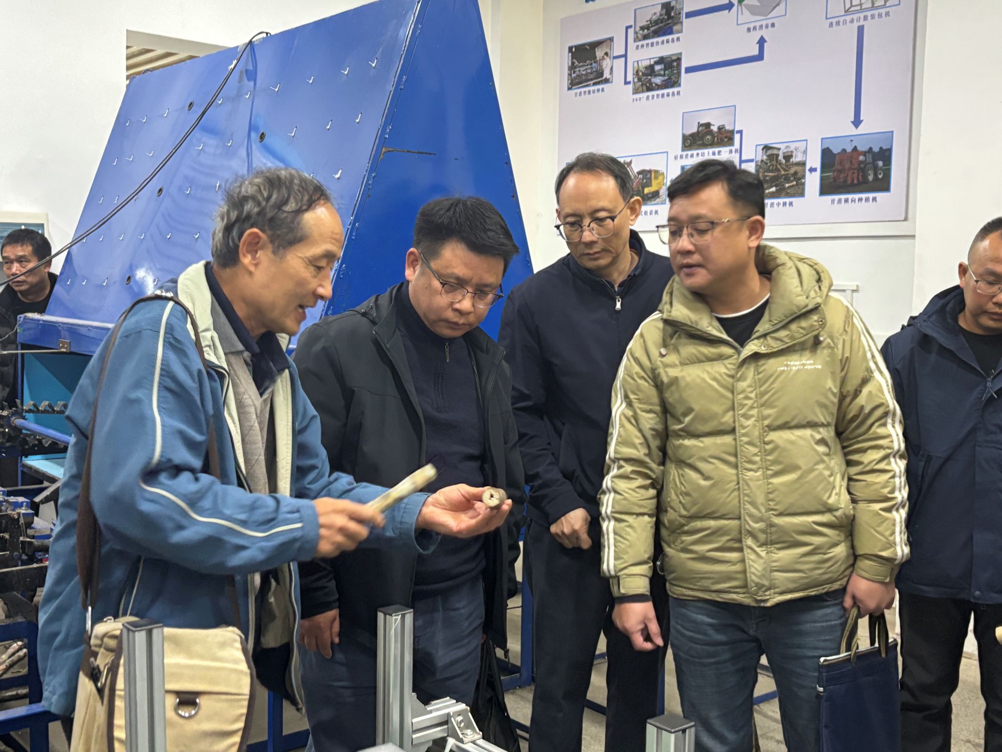 交流会上,覃志和详细介绍了公司的基本情况、学科优势和科研成果。李云教授说明了数字智慧蘑菇仓蘑菇种植系统的工作原理及其在农业生产中的实际应用及其重要意义。李尚平教授展示了实验室自主研发的甘蔗智能切种机、蔗种和蔗芽筛选机及切梢实验平台等智能装备。