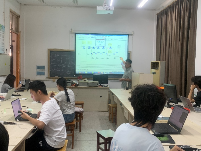 欧宏飞老师在文综楼1509带领员工做C程序项目