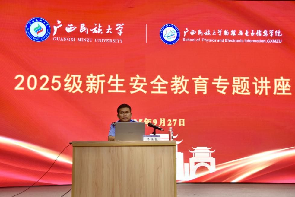 9月27日晚上,betway西汉姆官网在相思湖校区大礼堂举行2025级新生安全教育专题讲座。本次讲座特邀南宁市公安局西乡塘分局三级高级警长、驻挂betway西汉姆官网联络官韦振豪为公司师生作宣讲,公司党委副书记玉琳主持,公司全体辅导员以及700余名2025级本科生、研究生参加。