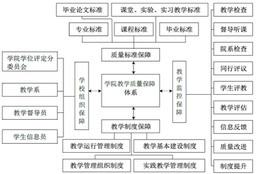 公司在公司“四查、四评、一平台”教学质量保障和监控体系的基础上,结合公司的特点,以不断提升教学质量为目标,将目标管理和过程管理有机结合,并在教学过程中不断健全和完善,建立了以公司、教学系、实验教学中心三位一体、老师和院系领导全员参与、全程监控的质量保障管理体系。